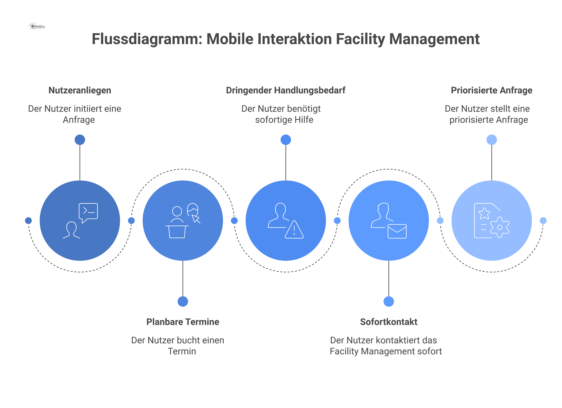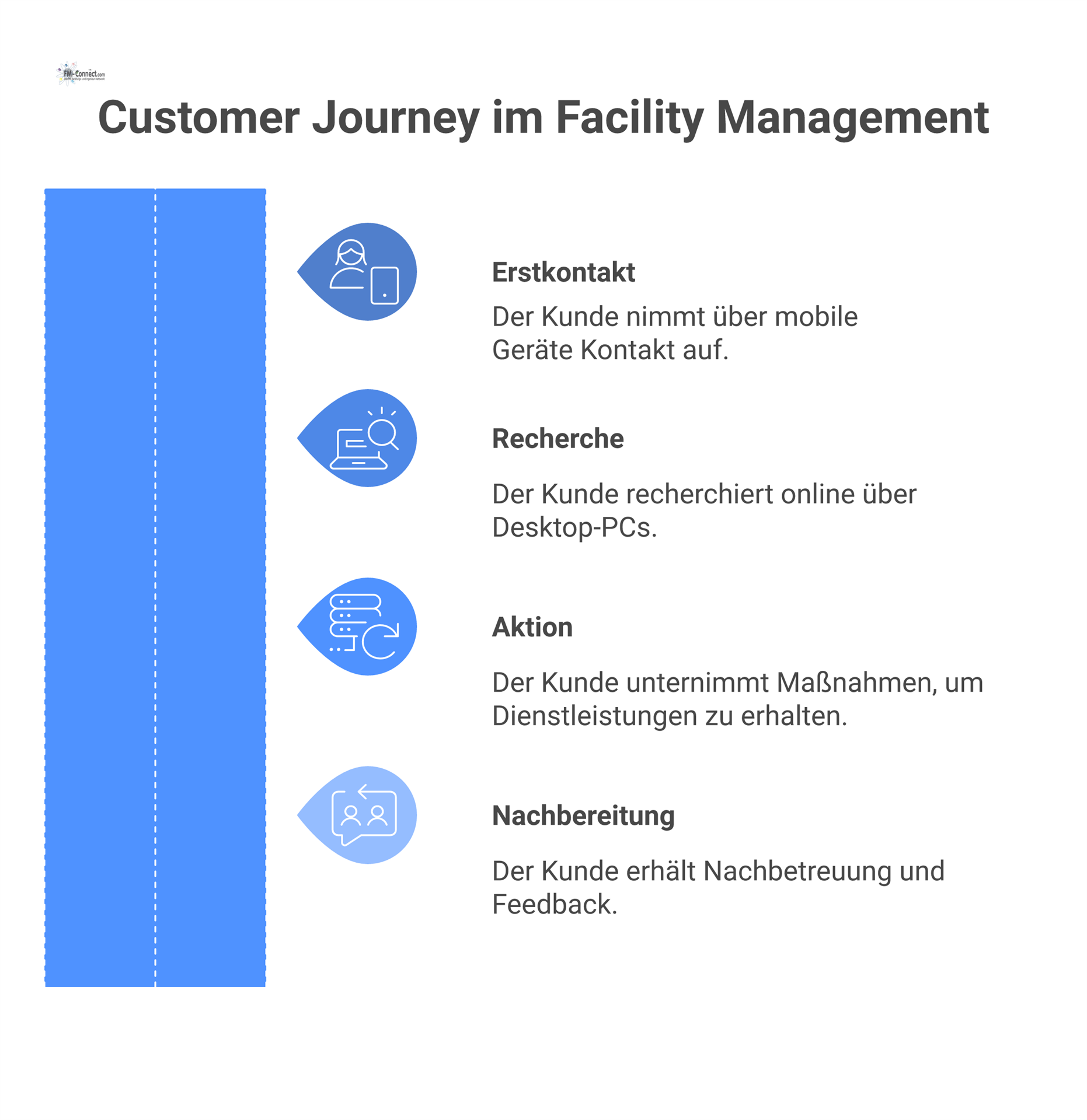 Mobile Touchpoints begleiten im Facility Management den gesamten Entscheidungsprozess. Die erste Suche und Themenorientierung erfolgt oft mobil, etwa bei einer akuten Frage oder während eines Vor-Ort-Termins. Danach können Nutzer Leistungen und Anbieter vergleichen, Rückfragen stellen, Anfragen absenden oder Termine vereinbaren. Auch die Prüfung von Dokumenten, Angeboten und Nachbearbeitungsschritten findet teilweise mobil statt, insbesondere wenn schnelle Abstimmungen erforderlich sind. Nach dem Erstkontakt entstehen wiederkehrende Nutzungsmomente, etwa für Rückfragen, Nachweise, Folgebuchungen oder standardisierte Bestellungen. Mobile Qualität beeinflusst damit nicht nur den Einstieg, sondern die gesamte Beziehung zum Anbieter.