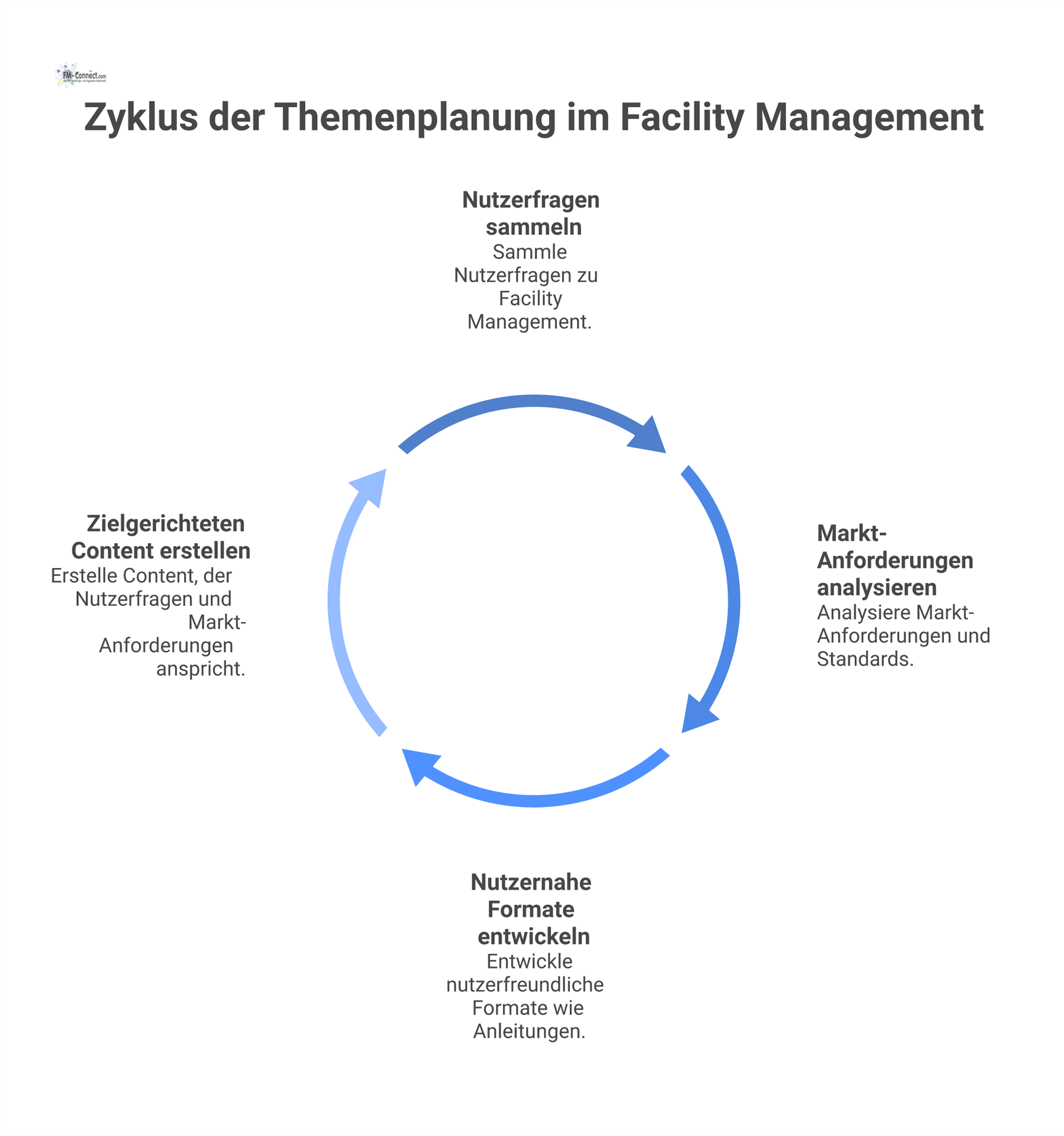 Neben Nutzerfragen muss Themenplanung auch marktbezogen gesteuert werden. Im Facility Management verändern sich Bedarfe, Schwerpunkte und Entscheidungslogiken laufend, etwa durch neue Beschaffungsformen, veränderte Betreiberanforderungen, Effizienzdruck oder veränderte Erwartungen an Standardisierung und Nachweisführung. Ein professionelles System beobachtet deshalb, welche Themen in welchen Segmenten an Gewicht gewinnen und wie sich dies auf Prioritäten im Content-Programm auswirkt. Diese Beobachtung muss mit Angebotsstruktur, Vertrieb und Plattformentwicklung abgestimmt werden. Nur so entstehen Inhalte, die nicht allein informativ sind, sondern auch die Marktbearbeitung unterstützen. Marktbezogene Steuerung bedeutet dabei nicht kurzfristige Themenjagd, sondern die kontrollierte Anpassung der Themenarchitektur an reale Nachfrage- und Entscheidungsentwicklungen.