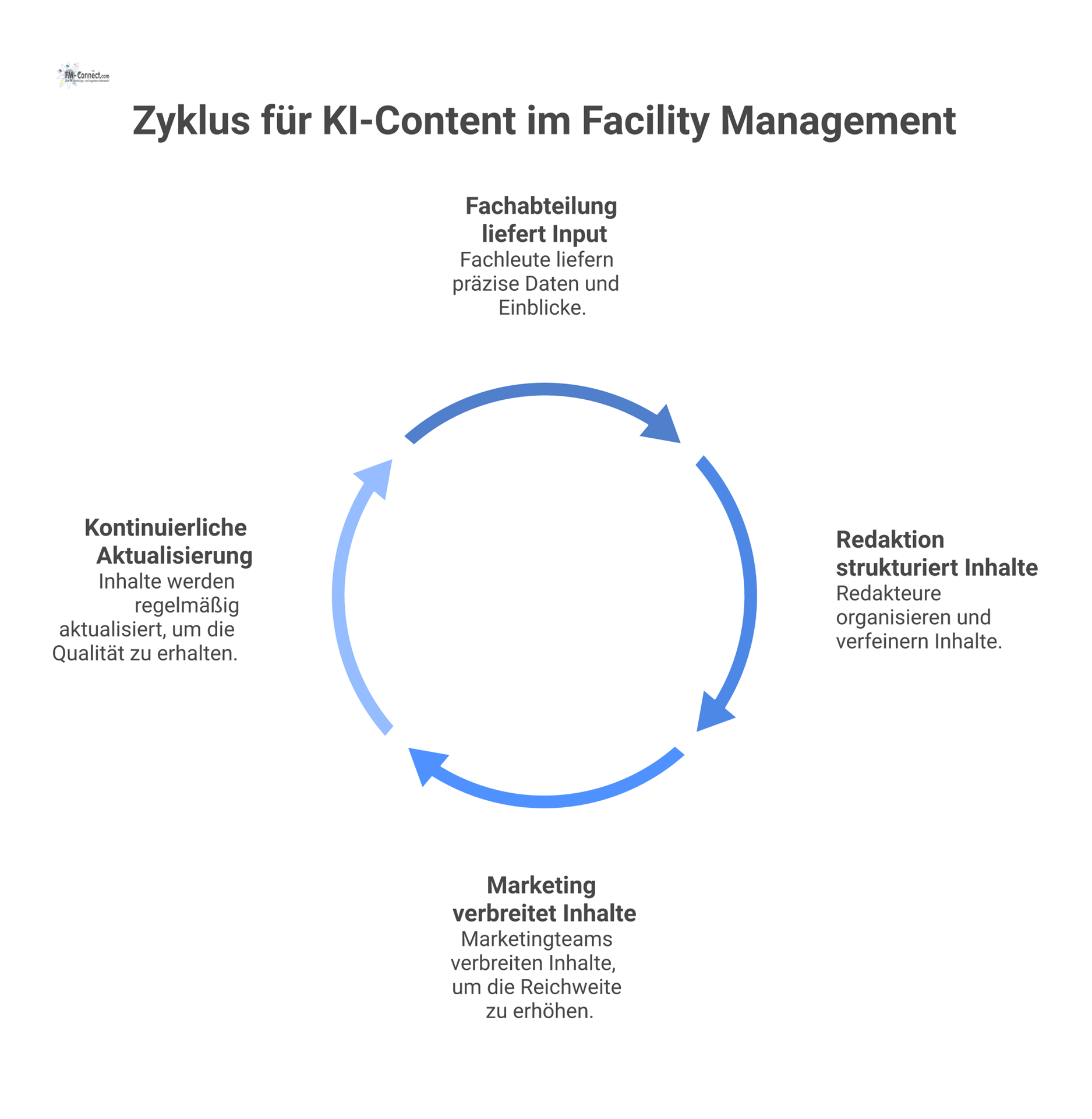 Belastbare Inhalte entstehen nur dort, wo technische Fachlichkeit, redaktionelle Struktur und digitale Vermarktung eng zusammenarbeiten. Im Facility Management ist diese Schnittstelle besonders wichtig, weil viele Themen zugleich erklärungsbedürftig, vertriebsrelevant und operativ sensibel sind. Die Fachabteilung liefert die inhaltliche Präzision, die Redaktion schafft Verständlichkeit und Struktur, und das Marketing sorgt für Reichweite, Positionierung und Anschluss an digitale Nutzerwege. Ohne diese Abstimmung entstehen entweder fachlich schwache oder kommunikativ unbrauchbare Inhalte.